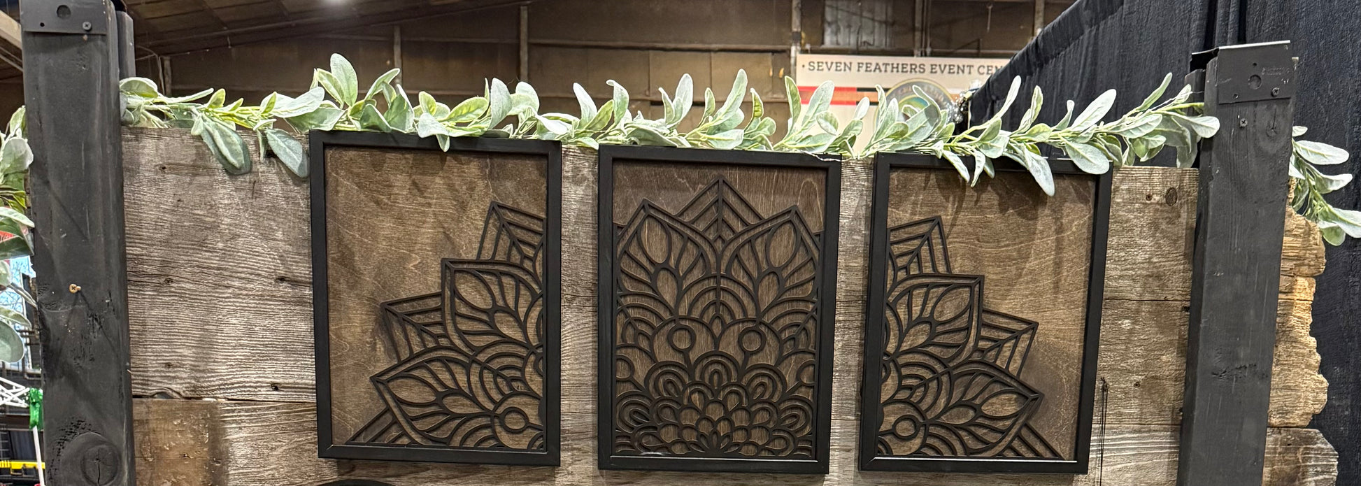 The black and walnut stain is an absolute chefs kiss. Elevate your household decor with this 3 piece mandala!